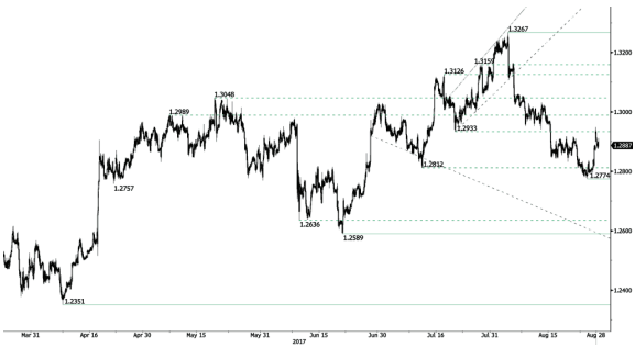 英镑兑美元(GBPUSD)强劲反弹 英镑兑美元(GBPUSD)今日技术分析 英镑兑美元大涨,突破阻力位1.2988/95 (2017年9月1日高点)。小时支撑位于1.2774(2017年8月24日高点)附近,小时阻力位于1.3050(2017年8月7日高点)。预计短线将面临上涨压力。 英国退欧打开了进一步下跌的空间以来,长线技术··· 作者: 返佣啦 2017-09-07 10:26 1,503
