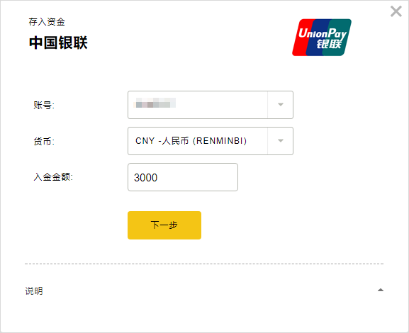 在支付信息处输入EXNESS内部转账账号,当有可用余额时就可以在后台取款,取款到您的EXNESS交易账户